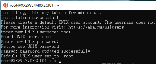 重启动Windows后→点击开始→Ubuntu的图标:首次启动Ubuntu,会有一个安装过程,需要设置用户名和密码。